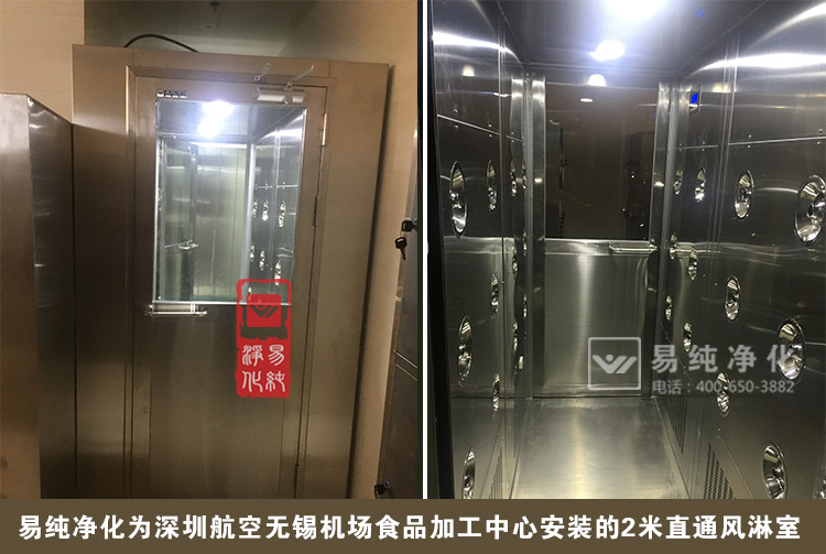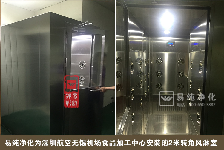 也許我們很想了解一下,航空食品的生產(chǎn)是否和普通企業(yè)的生產(chǎn)類似,是否也有著嚴格的產(chǎn)品質(zhì)量和衛(wèi)生管理呢。日前,我司為深圳航空公司無錫碩放國際機場深航食品加工中心安裝了2臺風淋室。所有工作人員要進入食品加工中心作業(yè)之前都需要先經(jīng)過更衣室,洗手消毒、然后進入風淋室進行吹淋,在吹淋步驟完成之后方可進入到車間,這樣用風淋室強制吹淋,將員工身上表面脫落的毛發(fā)、灰塵吹落吸收掉,防止和杜絕將污染源帶入到食品加工中心。